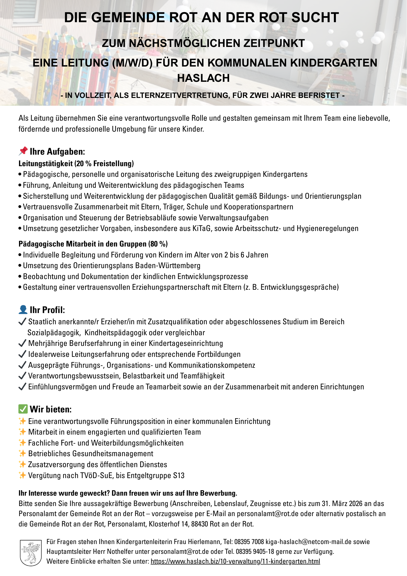 ...den Kindergarten Haslach - Kindergartenleitung (M/W/D)